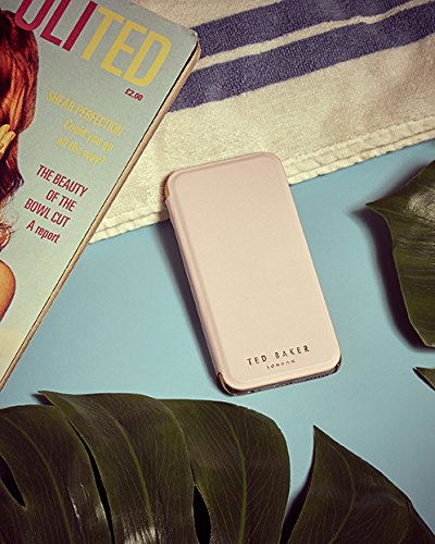 Title : Official TED BAKER Fashion Branded Mirror Folio Case for iPhone 7, Protective Wallet iPhone 7 Cover for Professional Women - SHANNON - Nude / Rose Gold