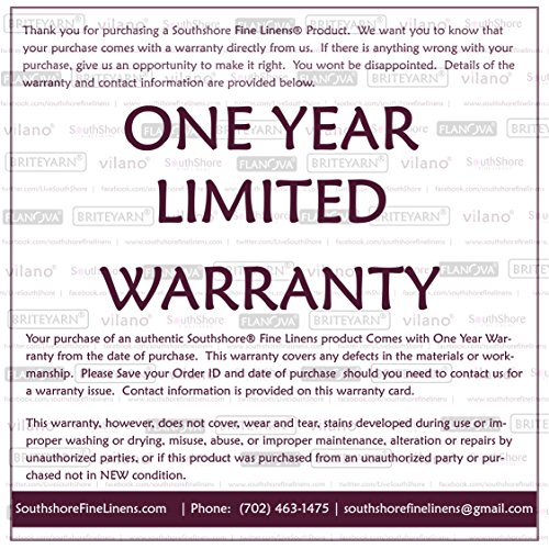 • BUY WITH COMPLETE CONFIDENCE – This is a Southshore Fine Linens® Product and is part of our Trademark Name Vilano®. Comes with a ONE YEAR Warranty. We strive for 100% Customer Satisfaction. If for any reason you are not satisfied, please contact us and we will take care of you. Please make sure you are buying from Southshore Fine Linens® or our FBA Account to qualify for this Warranty. We promise to do our absolute best to resolve any issues you might have.
