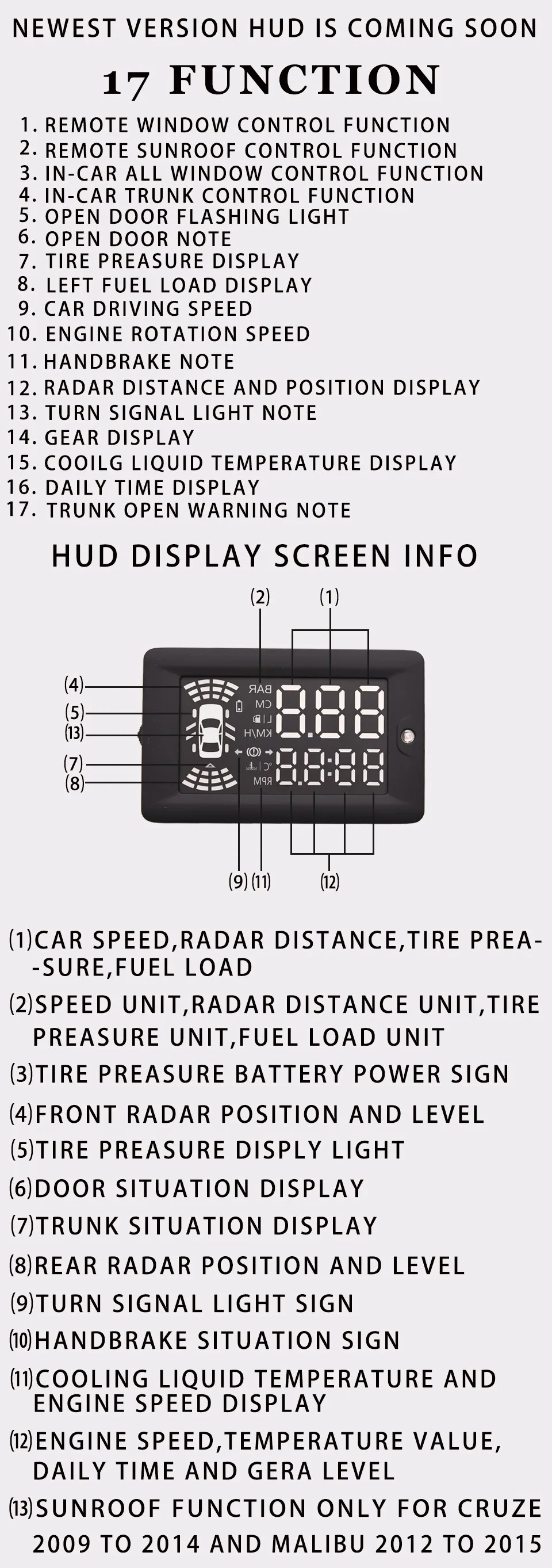 Function 11: HUD Can Control Trunk (This Function Is Only For Sedan Not For Hatchback)
