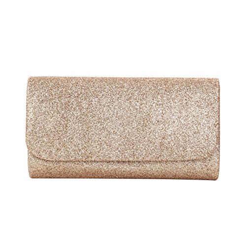 This high quality small evening clutch is both simple and stylish. Metallic color with sparkling accents to create the unique party look. Fully lined with magnetic-flap closure and inner wall pocket. Removable hideaway shoulder chain strap with 22" drop. Stunning, functional and versatile. The size is 8" (L) x 4.25" (H) x 2" (W). Elegant design and luxury feel. A must have accessory for the perfect night out.
