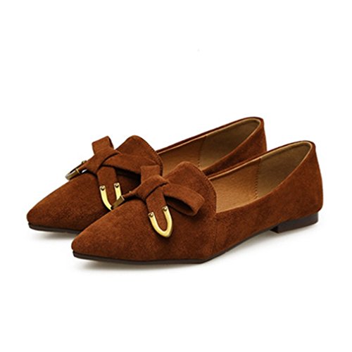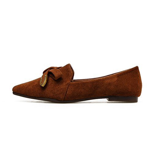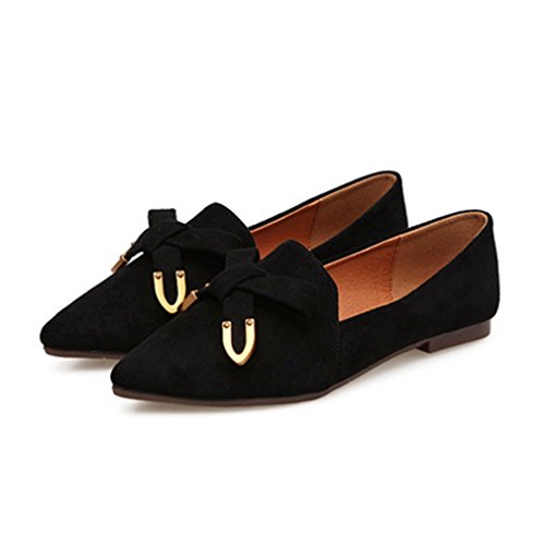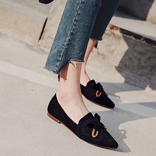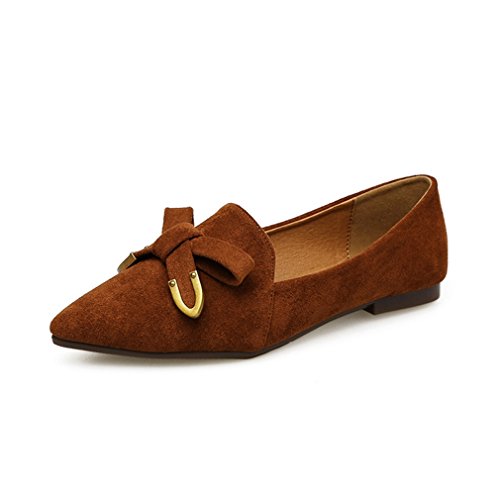 GIY Women's retro pointed toe flats loafers, comfort slip on Moccasin classic dress walking casual bowknot shoes, High quality and durable rubber sole, decorated with bowknot, these fashion casual loafers shoes is great for wearing to work or dressing up an outfit for a day and night out. features cushion soft technology for added comfort.