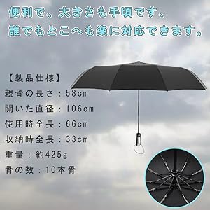 ●【耐強風の10本傘骨】高品質の10本をスチール使って、錆びることがないです。強風や台風にあおられてもひっくり返される心配はありません。