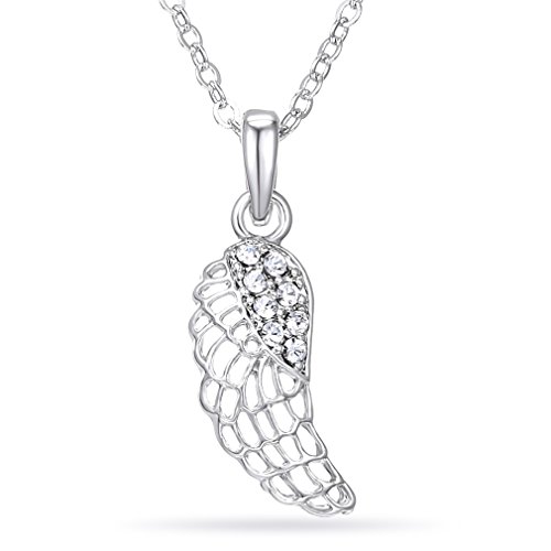-. Feature : High polished guardian angel crystal filigree wing pendant / 16 inches chain with lobster clasp and 2 inches extender / Pendant measures approximately 0.39 inches wide and 1.06 inches tall / Packaged in a lovely gift box / Ideal for Valentine, Mothers day, baptism, birthday, graduation, and casual wear