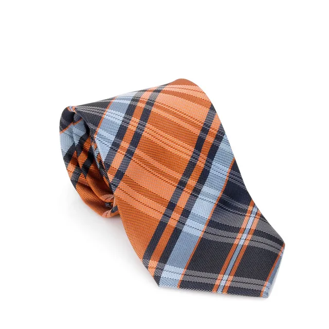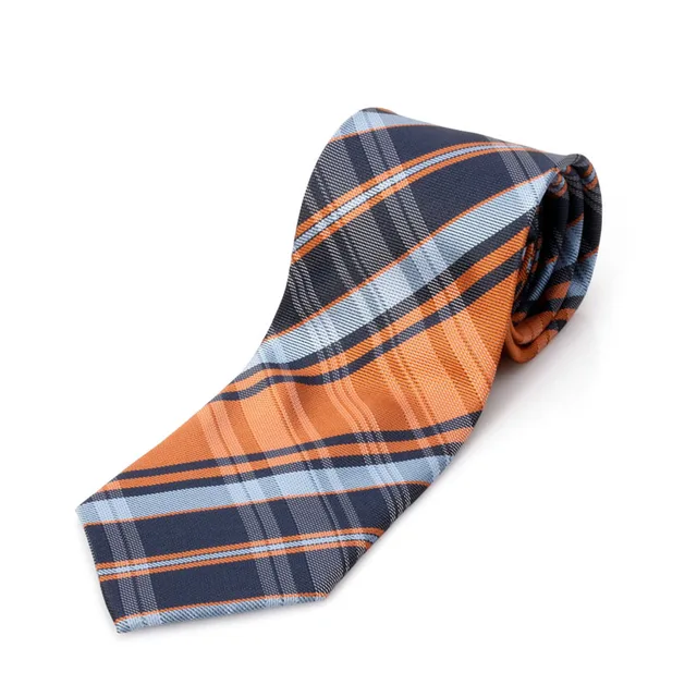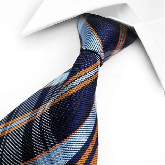 패션 클래식 블루 오렌지 패치 워크 실크 자카드 직물 넥타이 남성 넥타이 넥타이