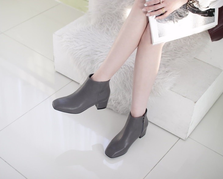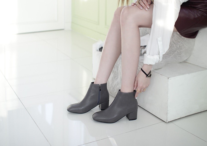 艶のあるヌーディーカラーが大人レディの足元を際立てる上品なショートブーツ。