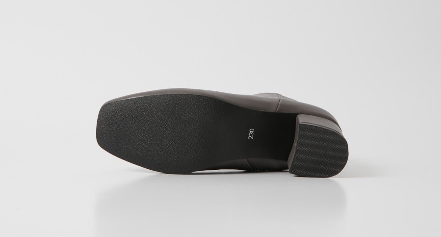 癖のないシンプルなデザインにトレンドの太いヒールを合わせ、モダンクラシックな印象に。