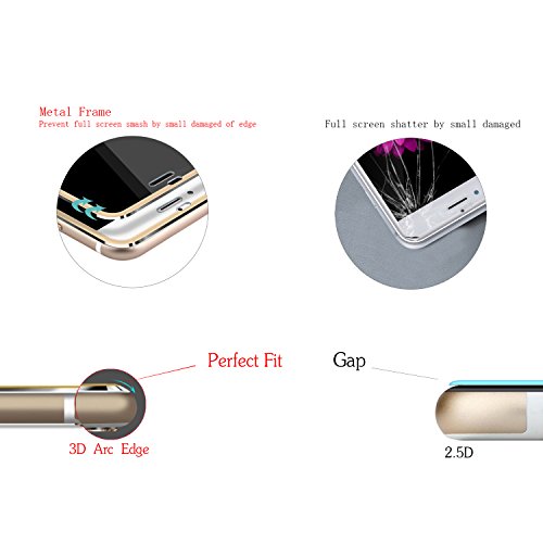 • This screen protector is specifically designed for iPhone 6/6s,full Screen coverage,3D Arc alloy Frame rounded edges,no gap around edge of iPhone,slim matt metal frame with tempered glass body,3D Touch Compatible,0.2mm thick.