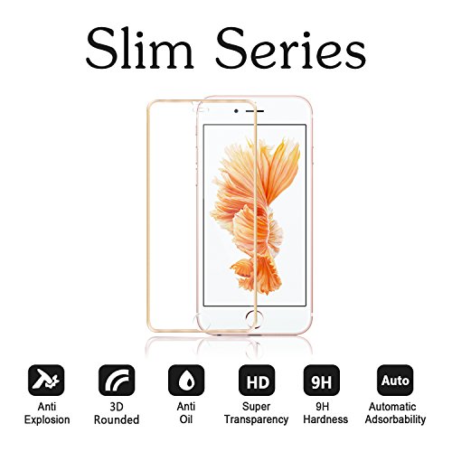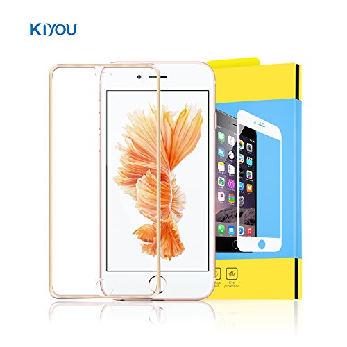 iPhone 6s Screen Protector KIYOU 3D Round Edge Tempered Glass Screen Guards Slim Metal Frame Full Screen Coverage Auto Adsorbing 9H Hardness Touch Accurate for Apple iPhone 6/6s (4.7 Gold)