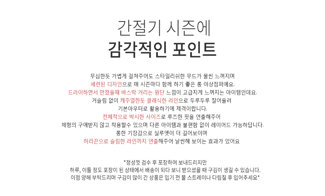 .같은 사이즈라도 체형에 따라 핏감이 조금씩 다를 수 있습니다.