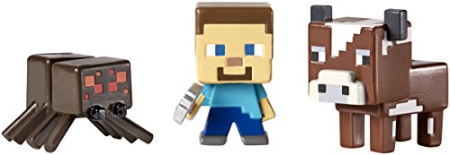 -. Binding : Toy -. Brand : Mattel -. Color : multi-colored -. EAN : 0887961074406 -. Feature : Now you can explore the world of Minecraft like never before! / Collect your favorite characters from the world of Minecraft! / Figures feature the game's signature appearance / Includes 3 mini-figures that bring the game to life in the palm of your hand / Collect your favorites and build out your Minecraft world! -. IsAdultProduct : 0 -. ItemPartNumber : CGX25 -. Label : Mattel -. Manufacturer : Mattel -. Model : CGX25 -. MPN : CGX25 -. PackageQuantity : 1 -. PartNumber : CGX25 -. ProductGroup : Toy -. ProductTypeName : TOYS_AND_GAMES -. Publisher : Mattel -. ReleaseDate : 2014-09-01 -. Studio : Mattel -. Title : Minecraft Collectible Figures Spider, Steve & Cow 3-Pack, Series 1 -. UPC : 887961074406 -. Warranty : No Warranty