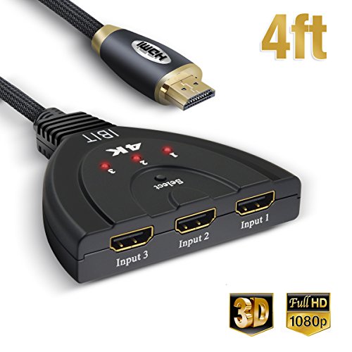 IBIT Newest Version HDMI 4K@30Hz switch bring you the high-end chip with high compatibility;Longer 4 FT Cable Design, easy to use, plug and play, just hook up 3 HDMI 4K@30Hz input devices(likes ps3/xbox360/blu-player) to one HDMI 4K Display(TV or Monitor)