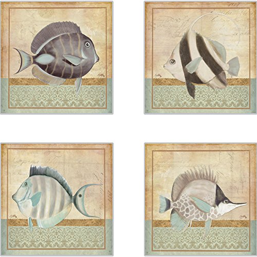 CoasterStone AS10075 Vintage Fish Absorbent Coasters, 4-1/4-Inch, Set of 4