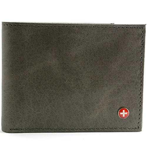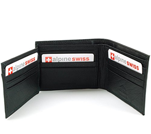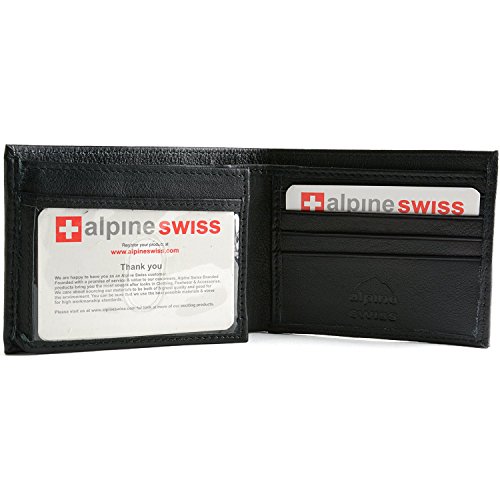 Alpine Swiss Men's Genuine Leather Wallet Slim Flip-out Bifold Black