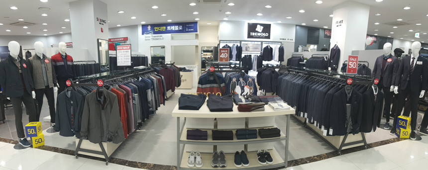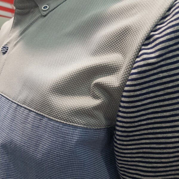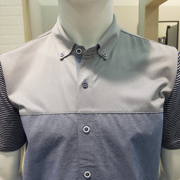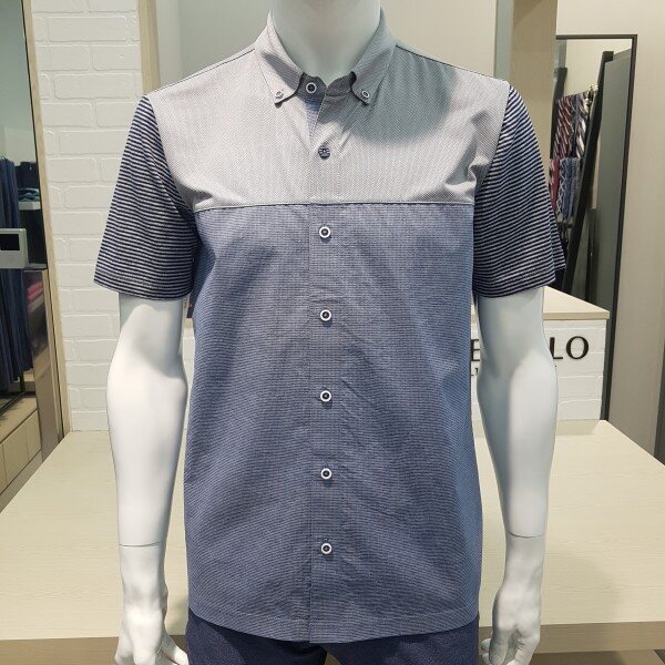우븐을 배색한 셔츠형 풀오픈 티셔츠