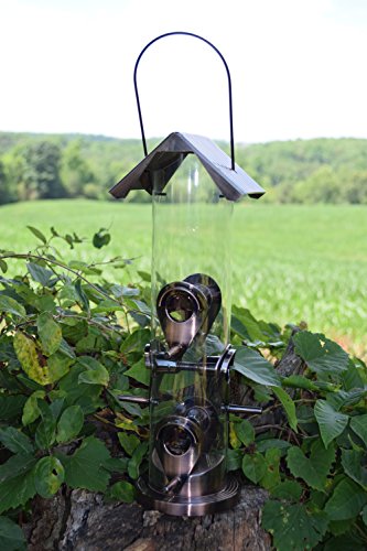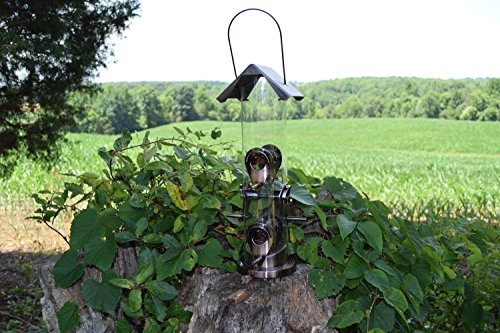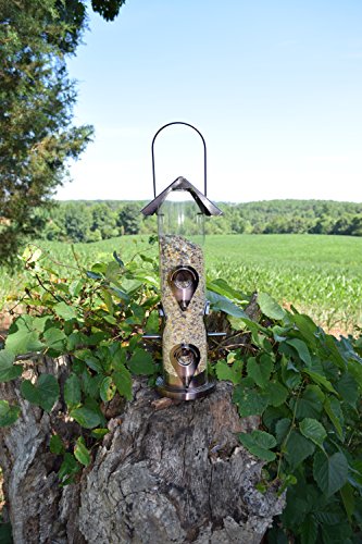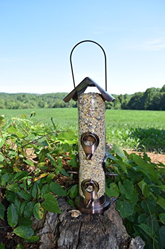 -. Feature : Lightweight, simple bird feeding tube design that is easy to hang, fill, and clean. / Antique copper tube bird feeder blends well with nature and promotes activity from wild birds forever. / 6 antique copper feeding ports and perches providing comfort and space for many birds. / Wild bird feeder measures 5 x 5 x 14 inches, and comes with our money back guarantee. / The Quirky Bird feeder is the perfect hanging birdfeeder gift for all season bird watching.