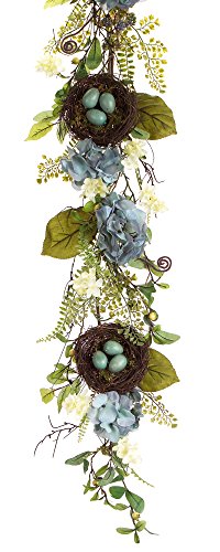 Melrose International Blue Hydrangea and Nest Garland, 48-Inch