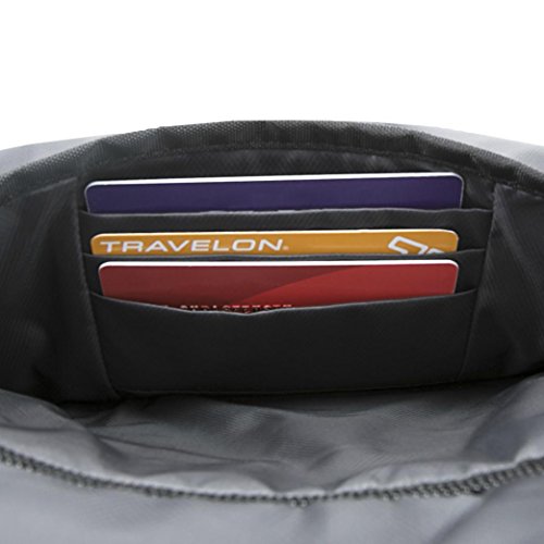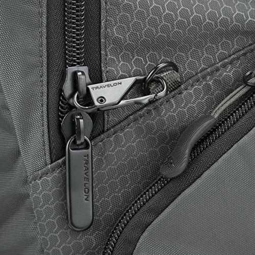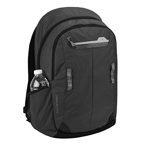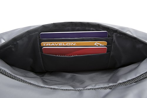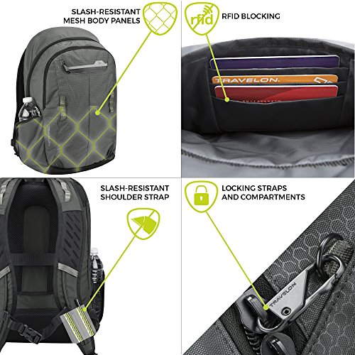 Studio : Travelon Publisher : Travelon Binding : Apparel Product Description This Travelon Anti-Theft Active(tm daypack has been designed for the person on the go. Made from lightweight, durable nylon it includes reflective printing for safety day and night. Water and stain resistant, high functioning organization and anti-theft features makes it great for outdoor adventure. The roomy main compartment with padded and fleece lined pocket holds a laptop to 15.6. Carry your smart phone safely in the front pocket - the zipper are water-resistant. The organizer compartment has an RFID blocking pocket with card and passport slots. The air mesh padded back panel and backpack straps offer greater comfort. PATENT: http:www.travelonbags.compatent-marking . 0