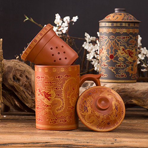 -. Brand : YOURNELO -. Color : Gray -. Feature : 2 mugs includes. Mug: 5.9*4.3 inch. / Holds up to 13.5 ounces, Hot or Cold beverages. / These coffee mugs are microwave and dishwasher safe for convenience. / Show your loved ones how much you care and love them with a graphic and artwork that fits their life style. / We sell not only mugs but also a healthy way of life. -. Model : gsh2017083103a -. ProductGroup : Kitchen -. ProductTypeName : KITCHEN -. Size : 5.9*4.3 inch -. Title : YOURNELO Creative Chinese Style Royal Dragon Yixing Boccaro Cup Tea Cup Mug with Lid Filtration set of 2