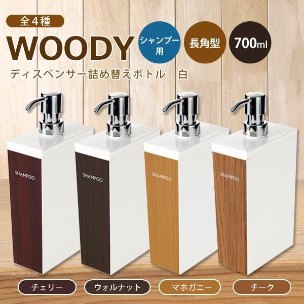 | 人気のWOODYシリーズ。前面は木目調、両サイドとバックスタイルはホワイトになっています。上のフタが簡単に取れて、詰め替えが便利になりました。長角型だから置き場所もいろんなアレンジができます。 |