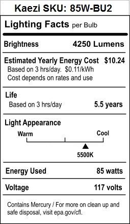 KAEZI 85 Watt Studio Light Bulb 5500K CFL Day Light.