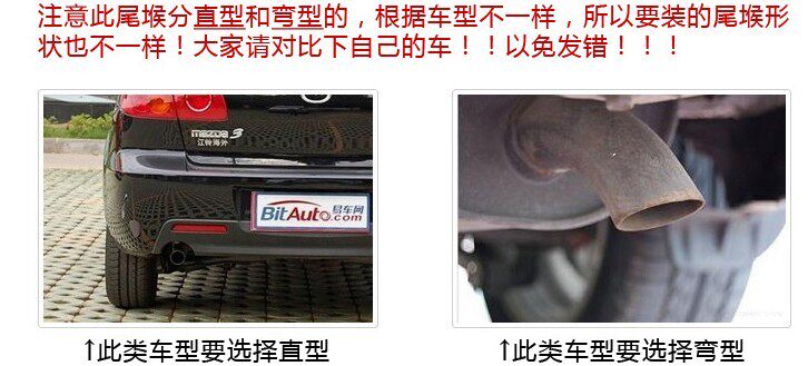 Tail throat interface diameter 60MM dear amount of car exhaust pipeoutside diameter less than 58MM can be used.