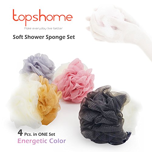 Shower Sponge, Bath Pouf Loofahs, Mesh Brush Shower Ball, Mesh Bath and Shower Sponge, Pack of 4 (Energetic color)