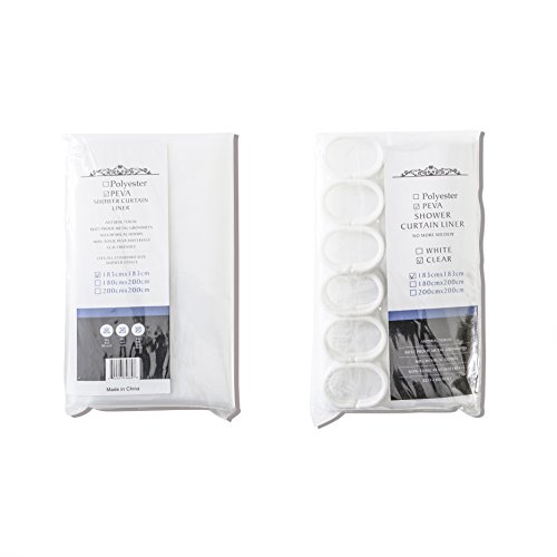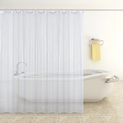 PEVA Clear Waterproof Resistant Shower Curtains Liner Set for Bathroom White 72W x 72L Inch with 12 Pieces Shower Curtain Rings Hooks