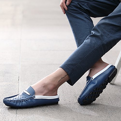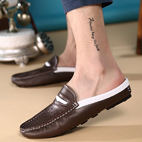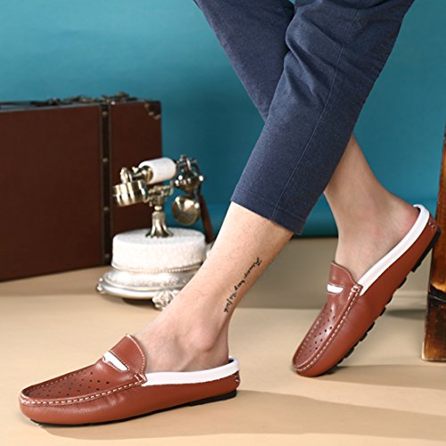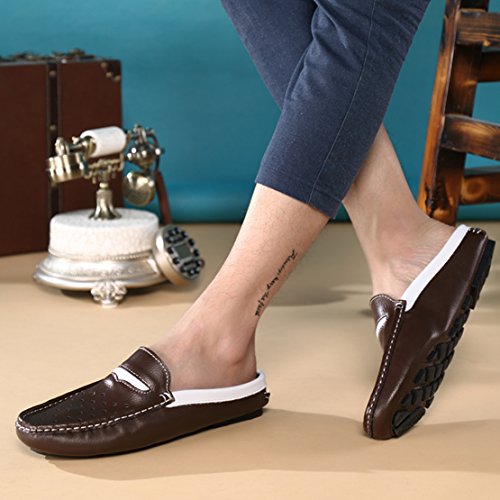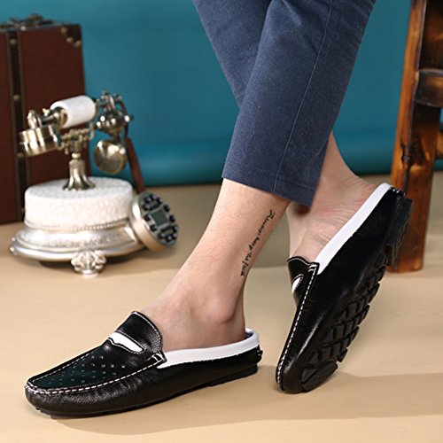 Go Tour Men's Comfortable Soft Scuff Leather Slippers Slip-on Loafters Shoes