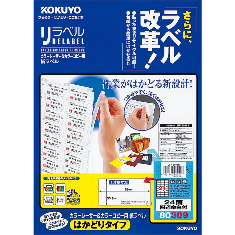 20 pieces of LBP-E80389 A4 24 margin with four sides face type to progress Kokuyo color laser and color copy paper relabel (japan import)