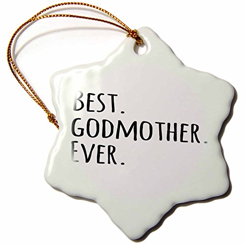 3dRose LLC orn_151526_1 Porcelain Snowflake Ornament, 3-Inch, "Best Godmother Ever-Gifts for God Mothers or God Moms-God Parents-Black Text"