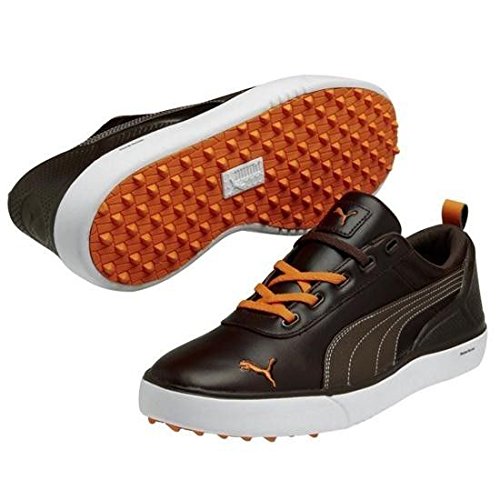Puma Monolite Mens Shoes Desiged for all the casual cool guys, rockin' shorts on the course, the Puma Monolite Mens Golf Shoe features premium full-grain leather upper for a sophisticated look, an external heel counter for increased support and stability, and a super lightweight sole for all-day comfort on and off the course. There are flex grooves in the forefoot for increased flexibility and enhanced ground contact. The Monolite truly has it all- you are never going to want to take these off and luckily you don't have to. Features: Ultra-premium, full-grain leather upper and suede lining for a soft feel Super lightweight EVA Midsole provides all-day long comfort and cushioning Heel tab for a super easy on-off transition SmartQuill® traction technology provides directional grip elements that enhance ground contact for improved stability and traction EverFoam® at heel for a fit that adjusts to the contours of your foot Carbon Rubber for excellent grip and long lasting durability Flex Grooves in forefoot for increased flexibility and enhanced ground contact Multiple laces to customize your style Crafted with durable materials with waterproofing guaranteed for one yearFeature
