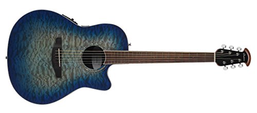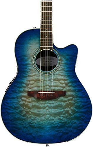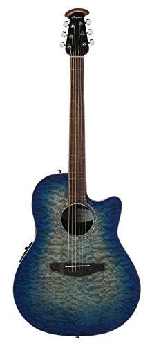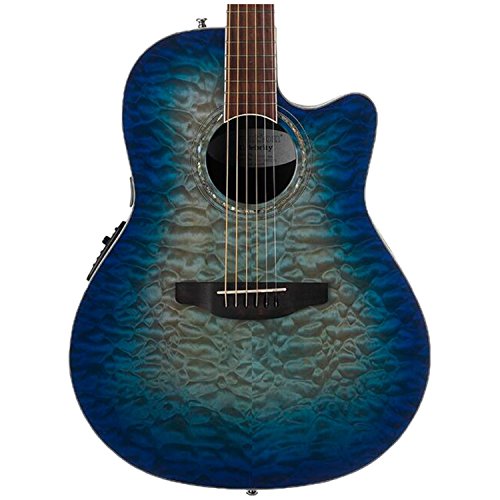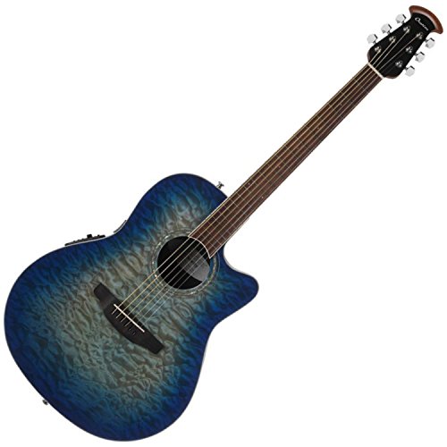 Studio : Ovation Guitars Publisher : Ovation Guitars Binding : Electronics Product Description The Celebrity Standard Plus series is your first step into the world of Ovation, with select figured tops, beautiful abalone appointments and first-rate sound, features and value. The Celebrity Standard CS28P-RG guitar has the classic Super Shallow bowl Lyrachord cutaway body with a striking Figured Koa top featuring quarter sawn scalloped “X” bracing. We reviewed earlier Ovation bracing patterns extensively to arrive at this remarkable new design, which borrows from the past and is voiced for the present with natural tone and optimal response and power. Together, the body and top create the classic Ovation sound, resonating with full projection, remarkable note clarity and balance, and nuanced tonal complexity. The Quilted Maple top also has an elegant abalone rosette, ivory white binding and beautiful Natural gloss finish. Other premium features include an effortlessly playable neck with a natural satin finish and rosewood-veneer headstock, 20-fret bound rosewood fretboard with abalone microdot inlays, and a rosewood bridge. For great live sound, the CS28P-RG features an Ovation Slimline pickup and OP-4BT preamp system with three-band EQ, volume/gain control, onboard tuner and low-battery light. 0