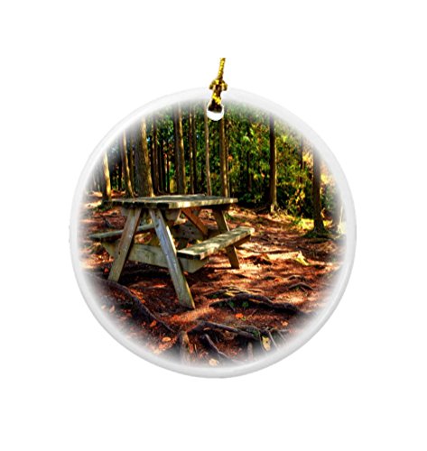 Rikki Knight Forest Picnic Table Design Round Porcelain Two-Sided Christmas Ornaments