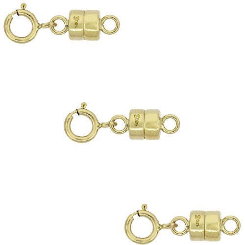 3 PACK 14k Gold 4 mm Magnetic Clasp Converter for Light Necklaces USA, Square Edge