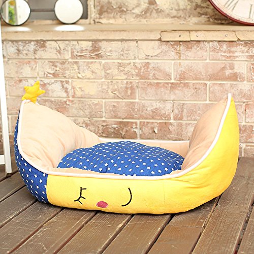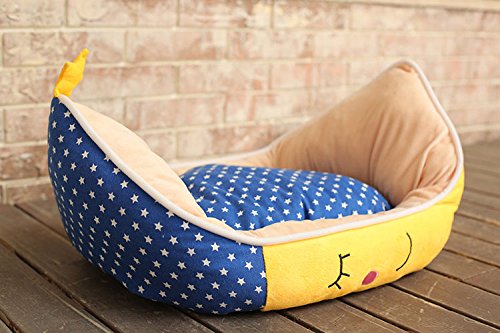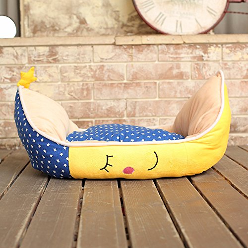 -. Binding : Misc. -. Brand : Colorfulhouse® -. Color : Yellow and Blue -. EAN : 6075194156974 -. Feature : Very cute pet bed for small dogs and cats / Ultra-soft pet bed for sleeping / Made of durable canvas (outside) material, filled with quality pp cotton / Measures approx 22Lx15W inches / Removable bed mat for easy cleaning -. Label : ColorfulHouse -. Manufacturer : ColorfulHouse -. NumberOfItems : 1 -. PackageQuantity : 1 -. ProductGroup : Pet Products -. ProductTypeName : PET_SUPPLIES -. Publisher : ColorfulHouse -. Size : 15Wx22L -. Studio : ColorfulHouse -. Title : Cute Moon Boat Pet Bed with Removable Bed Mat