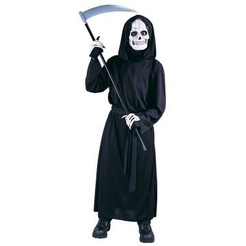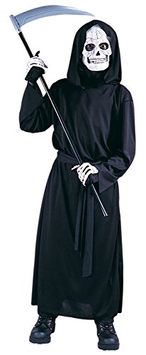 Product DescriptionGrave Reaper Costume Includes full-cut horror robe with hood, skull mask, tie belt and sculpted bone gloves. Scythe not included. Fits up to size 12.0
