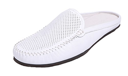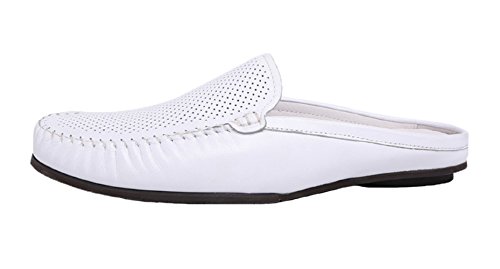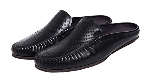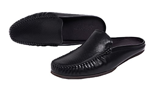 -. Title : Santimon Backless Slippers Hollow Mens Leather Leisure Slip-on Loafters Shoes