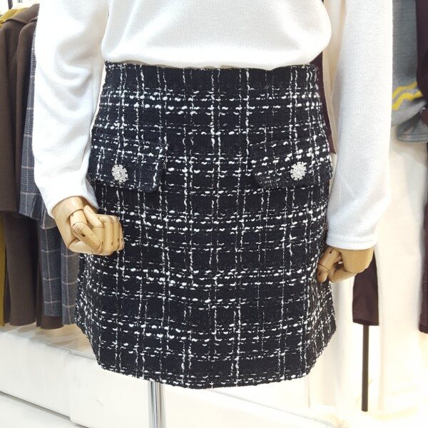 비비드한 컬러감의 트위드스커트입니다.세련된 느낌과 여성스러움 더하여주는 화려하면서도 데일리룩으로 입기좋은 아이템입니다.
