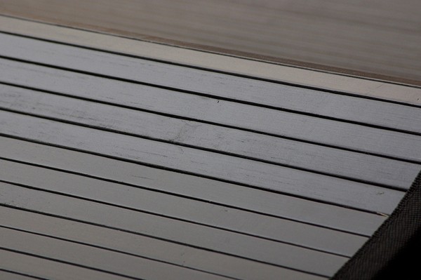 竹は耐久性に優れ、熱伝導率が高いため自然のひんやり感があります。表面の肌触りを滑らかにするため、また竹の色を揃えるためにUV塗装を施しています。シンプルな糸無しの張り付けタイプです。また無垢材を使用し、あたたかみのある質感に仕上げました。素材は17mm幅の竹ヒゴを使用しています。17mm幅の竹ヒゴは大きく育った竹からしか取れない素材です。竹は他の木材と比べると格段に成長が早く(3~5年で成竹)、持続的生産が可能な環境に優しいサスティナブルな素材です。