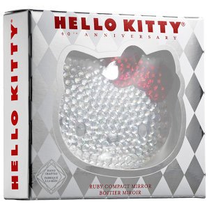 A collectible Hello Kitty-shaped compact mirror that sparkles in bling with nearly 300