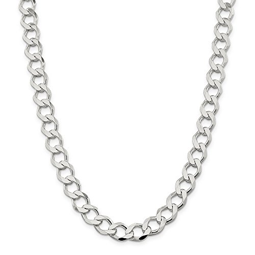 Sterling Silver 10.8mm Polished Flat Curb Chain Bracelet - 9 Inch - 28.5 Grams in Sterling Silver - JewelryWeb Style: QTB321835SS - FREE gift-ready jewelry box