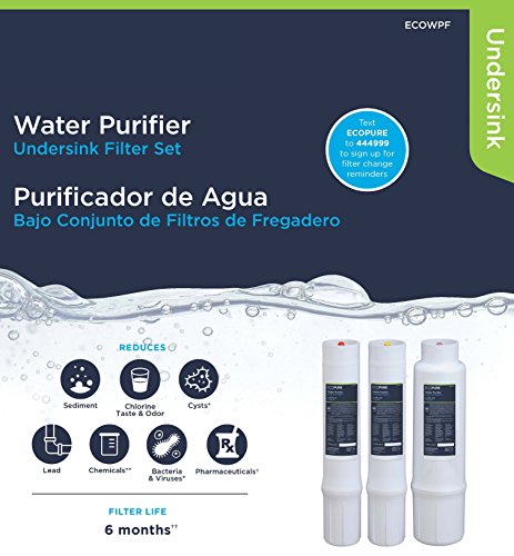 EcoPure Water Purifier Under Sink Replacement Water Filter Set (ECOWPF) | NSF Certified | Fits ECOP40 System | 6-Month Filter Life