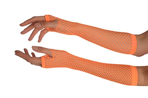 (LissKiss)/Accessories/Cold Weather Accessories/DIRECT FROM USA/Neon Orange Fishnet Fingerless Party Gloves - Orange Gloves
