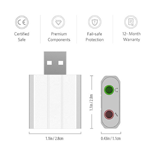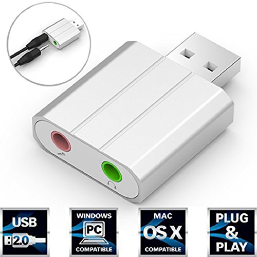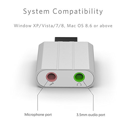 J-DEALUSB External Stereo Sound Adapter with 3.5mm Headphone/Speaker and Mono Microphone Jacks Audio Adapter for Window XP/Vista/7/8, Mac OS 8.6 or above