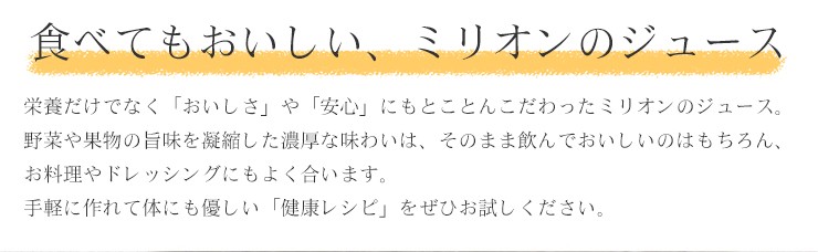 ミリオンの国産緑黄色野菜ジユースは、厚生労働省推奨の摂取量120gの2.16倍、なんと約260gの緑黄色野菜から作りました。