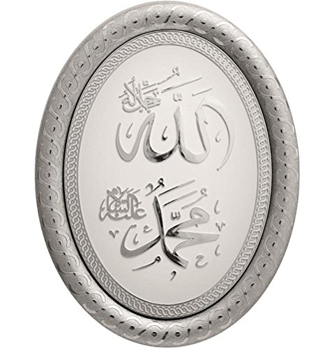 Islamic Gift Acrylic Decor Oval Plaque 9 x 11.8 inch Silver and White Allah Muhammad