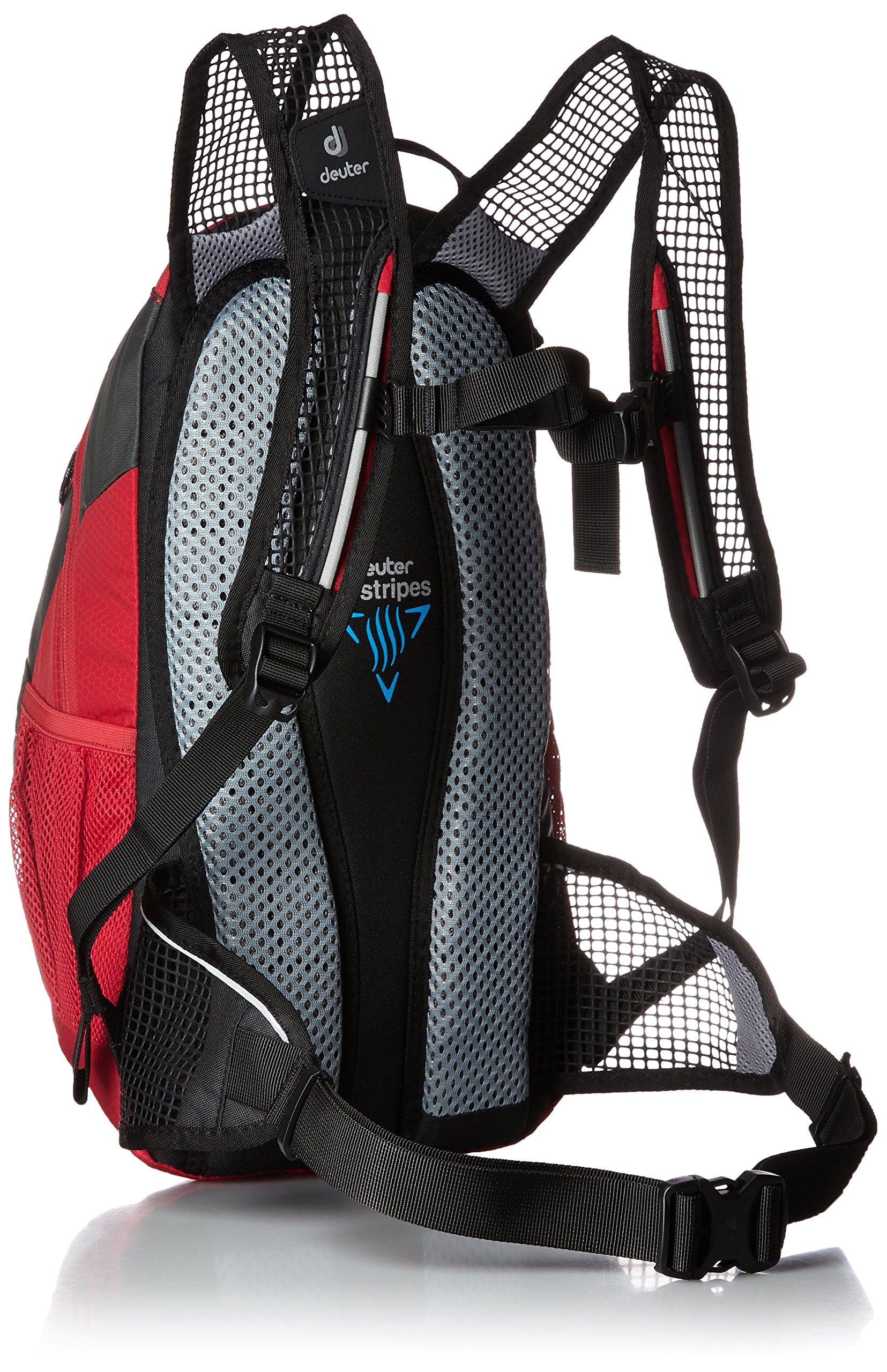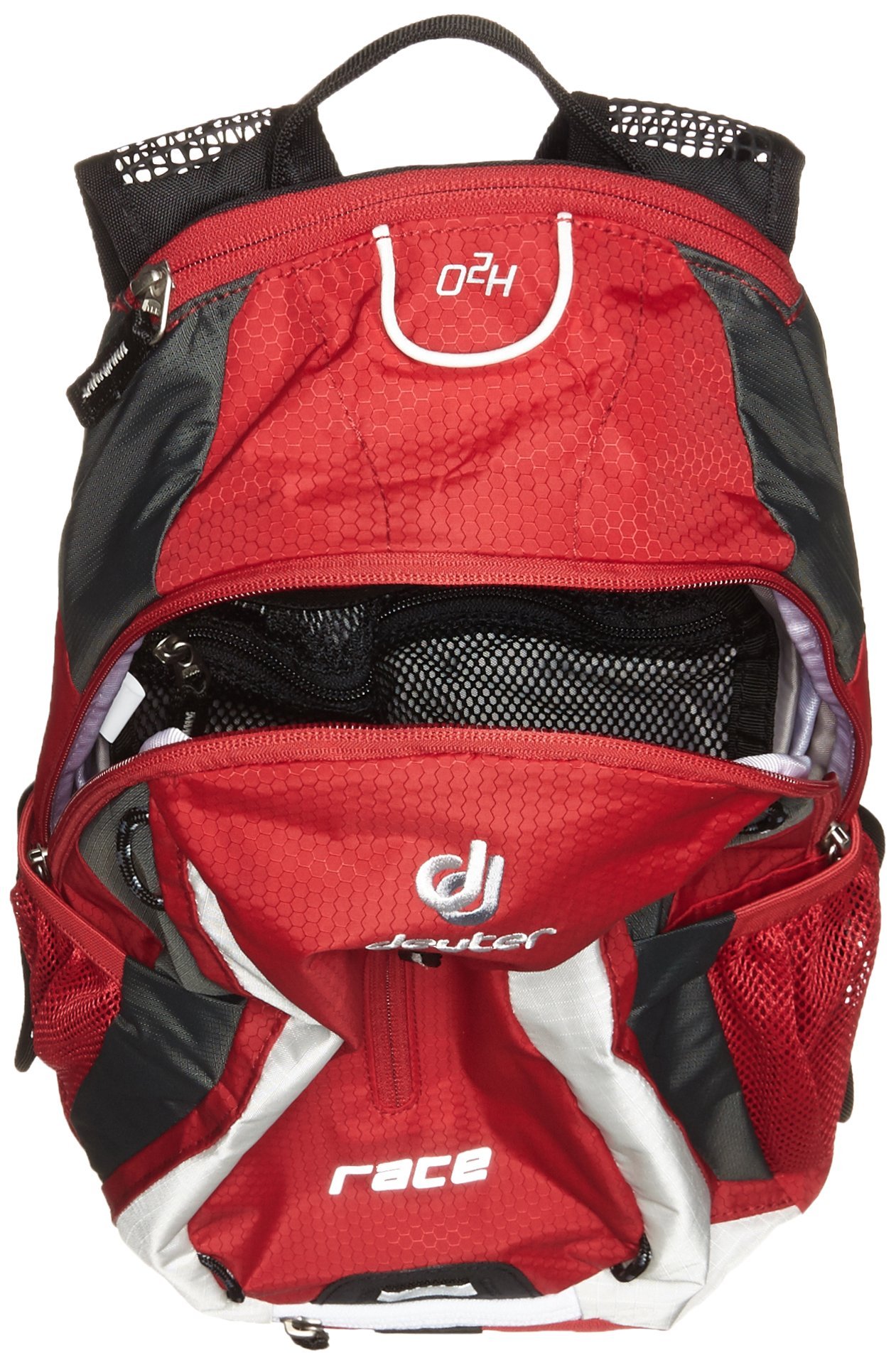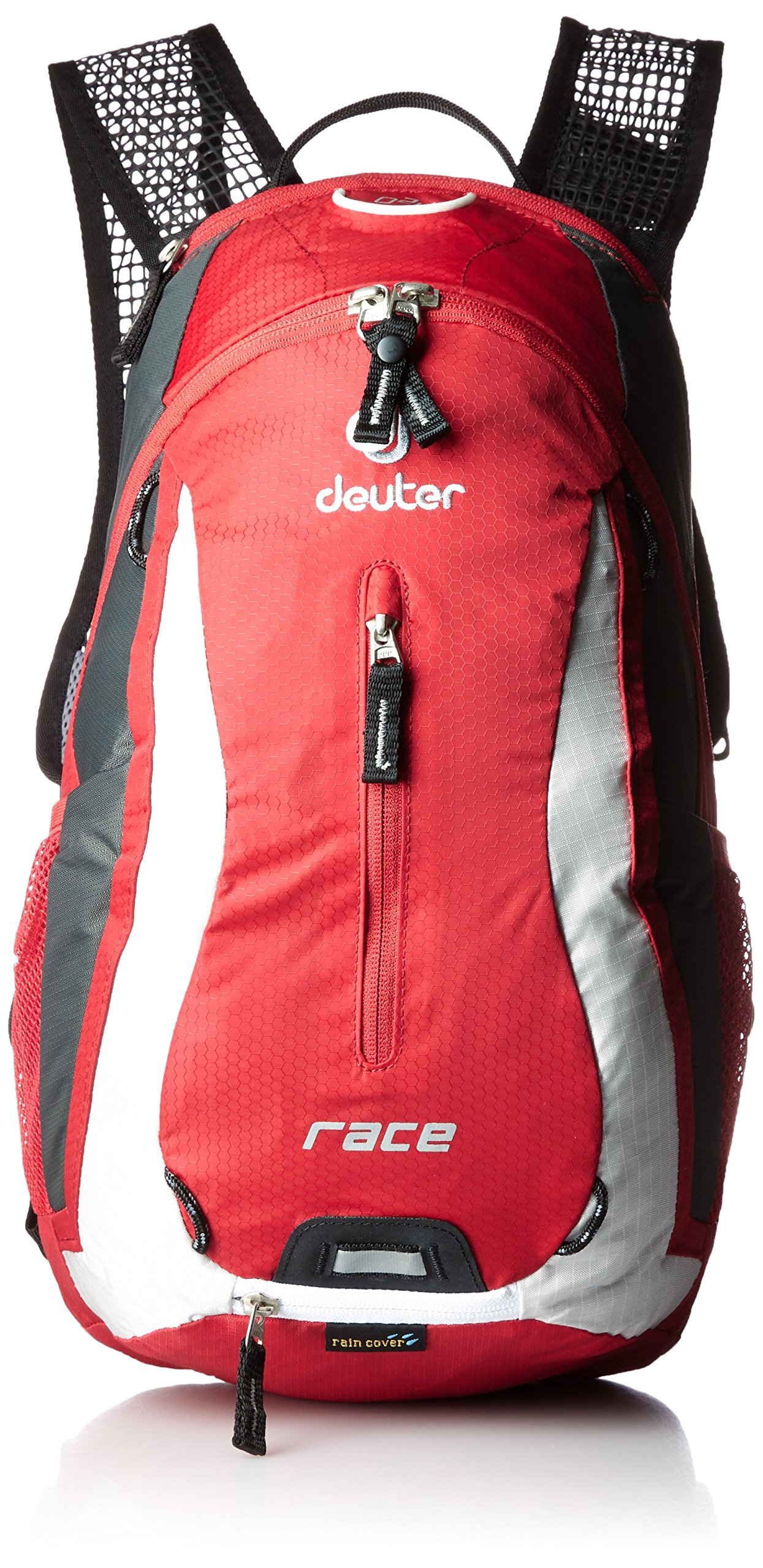 • Built-in rain cover • H2O system (2.0 ℓ streamer available) • Lightweight • Side mesh & front pocket • Chest strap • Mesh harness & hip fin