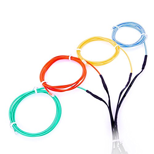 GloFX Rainbow EL Wire 12 ft Complete Kit - Red Blue Green Yellow color - Sound Activated + 3 Modes 12 feet electroluminescent wire