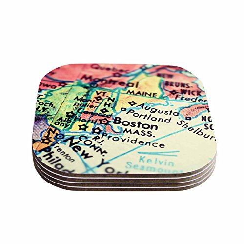 KESS InHouse Debra Obertanec "Boston On The Time" Pastel Coasters (Set of 4), 4 x 4", Multicolor