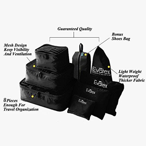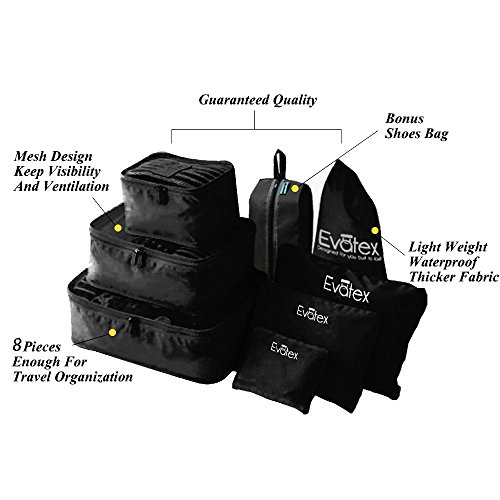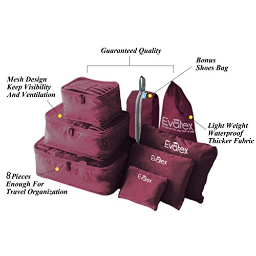 EVATEX TRAVEL PACKING CUBES WITH FREE BONUS SHOEBAG- ★ ★ ★ ★ ★ 5 STAR RATING! BEST PACKING CUBES-NEVER WORRY ABOUT YOUR STUFFS BEING MESSED-UP OR DAMAGED WHILE TRAVELING! The Most Convenient and Easy Way to Pack and Secure Your Stuffs While Traveling! - DURABLE DIAMOND NYLON Mesh that Withstands Pressures of Packing, Dumping and Handling while Traveling. - DESIGNED TO SECURE YOUR BELONGINGS, Conceal your most Private and Intimate Items while allowing you Easy Access to them Anytime. - NEVER WORRY ABOUT THE HASSLES OF AIRPORT CHECK-POINT'S. Never Worry about Misplacing Small but Important Items while Traveling - TRAVEL WITH YOUR KIDS and have their Stuffs Secured Separately within the same Bag. Travel with Infants and Never Worry About how to Handle their Soiled Cloths, Diapers and Change Cloths. - ORGANIZE TOPS, PANTS, UNDIES, MAKE-UPS, Used and Dirty Cloths, etc., in separate Packing Cubes while Traveling and have them Stay Nicely in Place. - PACK YOUR GYM CLOTHS, Running Shoes, Working Cloths etc., in one Bag but Separate "Packing Cubes"- Work to Gym! - SPILL RESISTANT SIDE MATERIAL. Never Worry about damp cloths accidentally soiling inside your bag - BRAND NEW 4PC-SETS OF DIFFERENT SIZES of Pack-it and Go Packing Cubes to meet all your Packing Cubes needs. THIS UNIQUE TRAVEL PACKING CUBES COME TO YOU WITH HASSLE-FREE REPLACEMENT GUARANTEE. WE WANT YOU TO BE 100% SATISFIED WITH YOUR PURCHASE! CLICK THE LINK ABOVE TO BUY YOUR UNIQUE TRAVEL PACKING CUBES AND START ENJOYING WORRY-FREE PACKING AND TRAVELING! 0 |